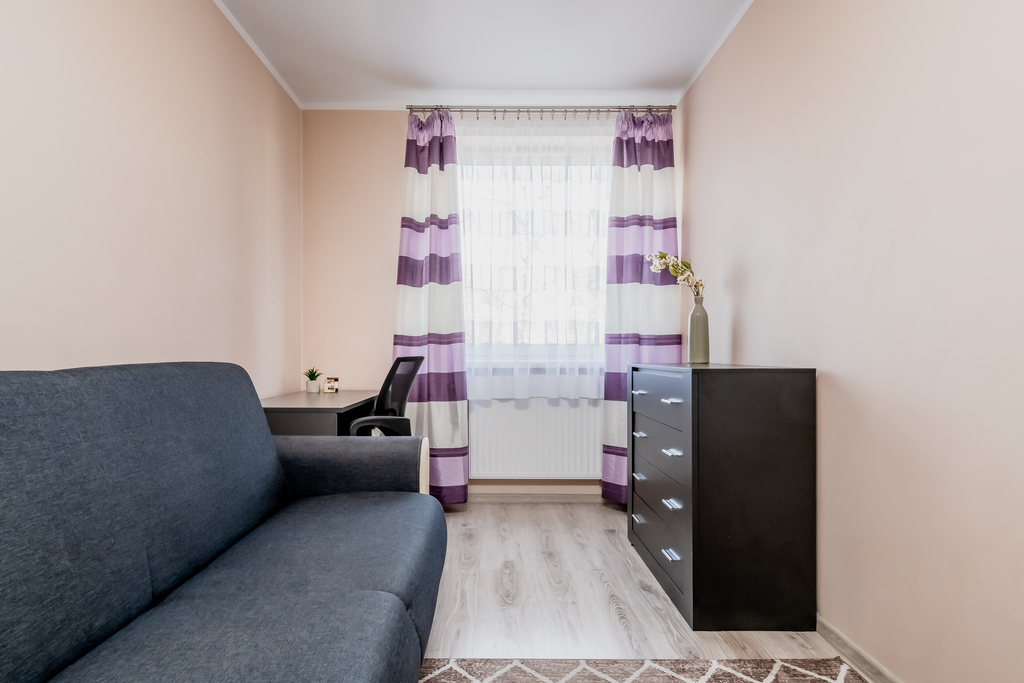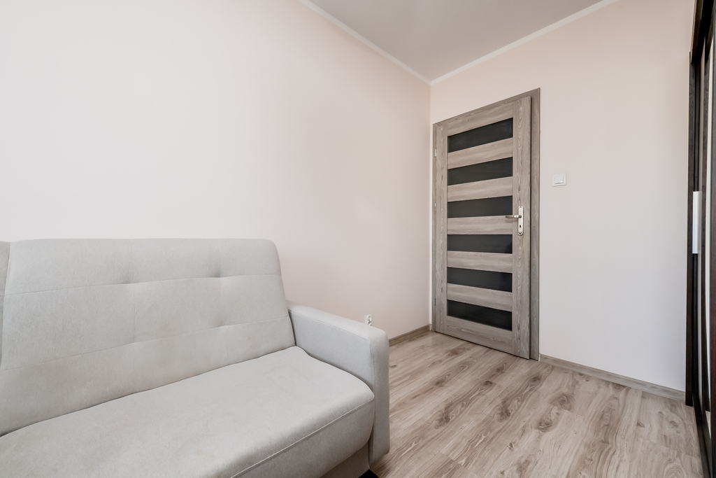 Mieszkanie jest w pełni umeblowane i wyposażone – gotowe do zamieszkania bez żadnych dodatkowych nakładów. Przestronna łazienka, pojemna szafa w przedpokoju oraz duży balkon o powierzchni 8 m² z widokiem na zieleń dopełniają obraz wygodnego, dobrze zagospodarowanego wnętrza.