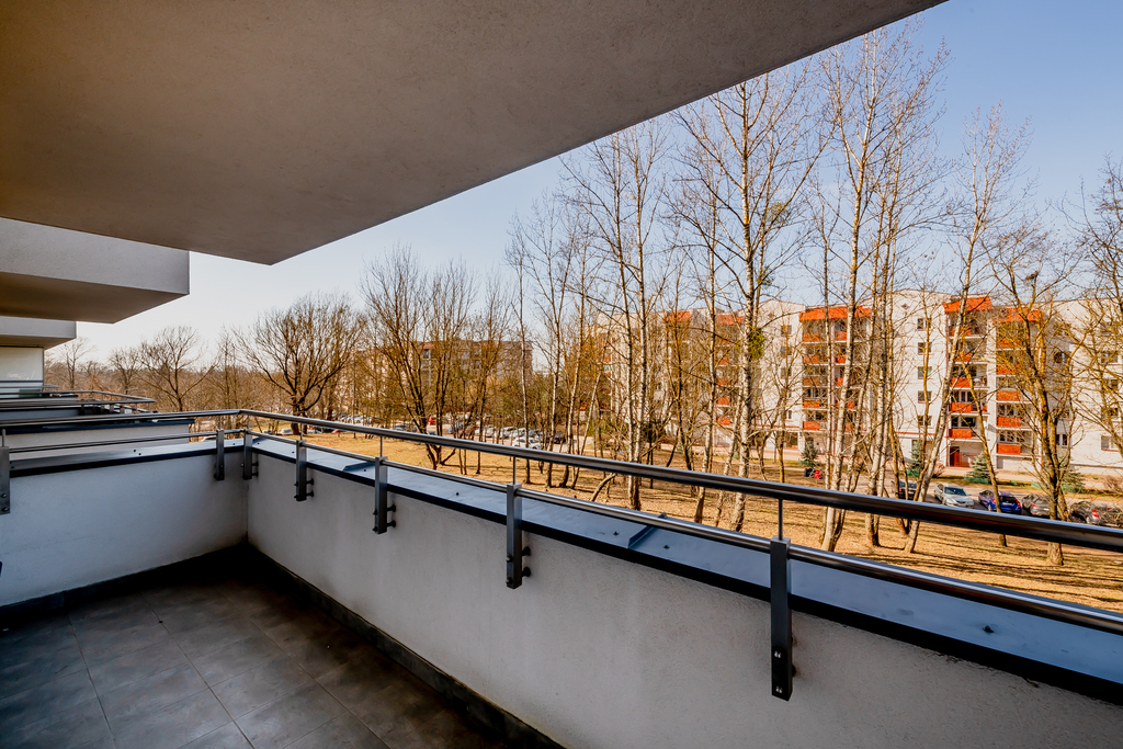 – Duży balkon o powierzchni 8 m² z widokiem na zieleń
