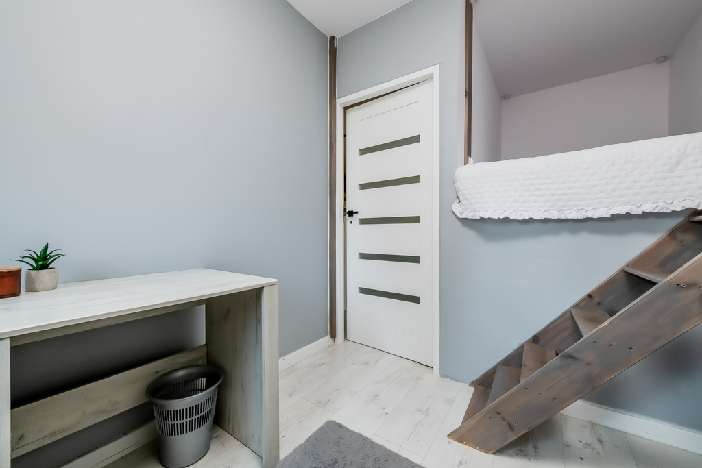 To przestrzeń, która łączy funkcjonalność mieszkania z komfortem domu jednorodzinnego. Na dwóch poziomach znajdują się aż 4 pokoje – salon, 3 sypialnie, oddzielna kuchnia, garderoba oraz dwie łazienki z WC – jedna z wanną, druga z prysznicem. Dzięki temu wnętrze świetnie odpowiada na potrzeby większej rodziny, zapewniając każdemu domownikowi własną strefę komfortu.