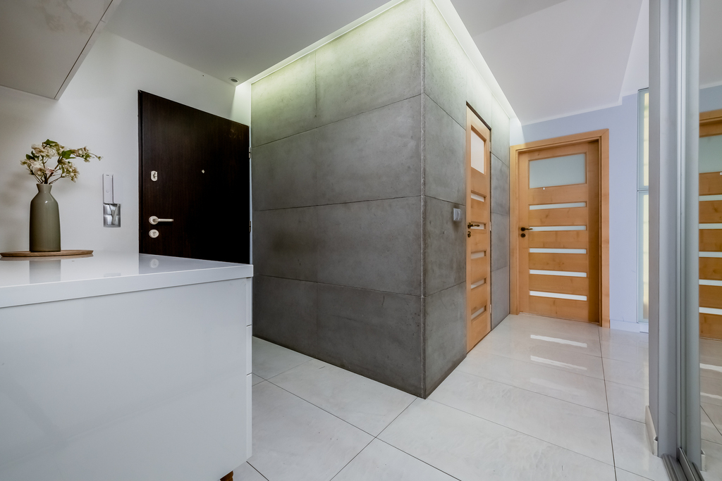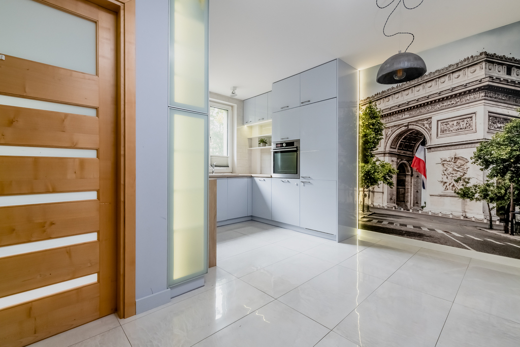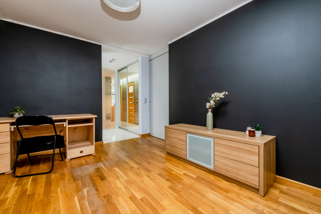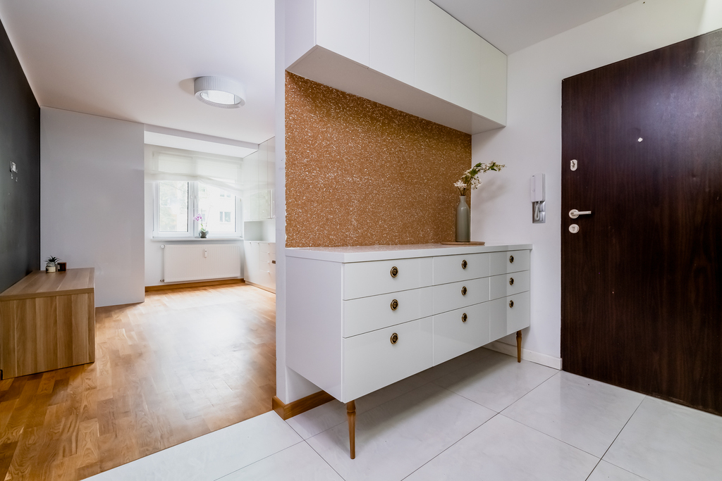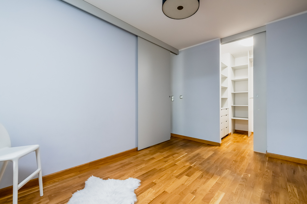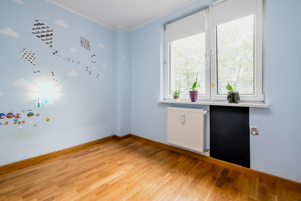 Mieszkanie przeszło kilka lat temu generalny remont, podczas którego wymieniono instalację elektryczną oraz hydrauliczną. W całym wnętrzu zastosowano wysokiej jakości materiały, co sprawia, że lokal prezentuje się elegancko i nowocześnie. Na podłogach znajduje się dębowy parkiet, a wszystkie zabudowy zostały wykonane na wymiar przez stolarza, co gwarantuje maksymalne wykorzystanie przestrzeni oraz trwałość. W mieszkaniu zamontowano antywłamaniowe drzwi wejściowe, a wewnętrzne wykonane są z litego drewna. Dodatkowym atutem jest przestronna garderoba w jednej z sypialni, zapewniająca komfort przechowywania.