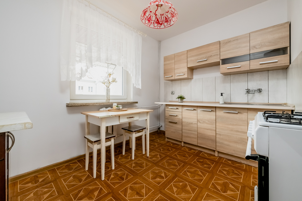 To funkcjonalne, dwupokojowe mieszkanie z przemyślanym układem i dużą, oddzielną kuchnią, które zapewnia wygodny podział na strefę dzienną i prywatną. Do dyspozycji są dwa niezależne pokoje: przestronny salon oraz oddzielna sypialnia, co daje domownikom komfort i swobodę aranżacji. Mieszkanie jest dwustronne i bardzo dobrze doświetlone, a nowa stolarka okienna dodatkowo poprawia komfort termiczny i akustyczny.