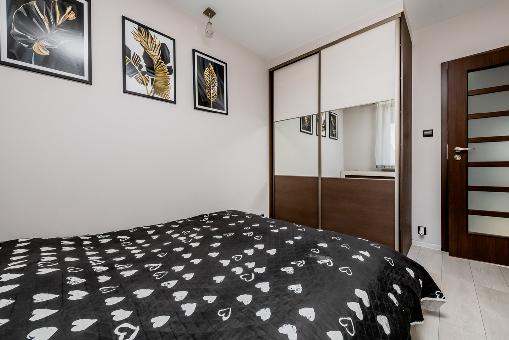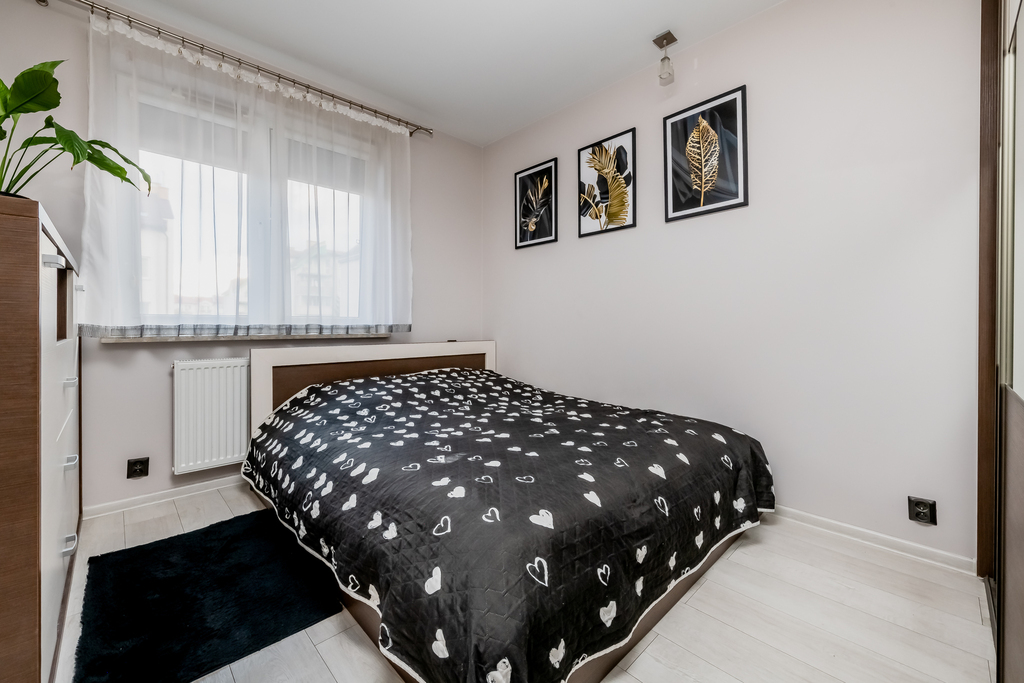 Mieszkanie zostało zaprojektowane z myślą o komforcie i funkcjonalności, łącząc nowoczesny styl z praktycznym układem wnętrza. Składa się z dwóch oddzielnych sypialni, przestronnego salonu z aneksem kuchennym oraz osobnej garderoby, która pozwala utrzymać porządek i maksymalnie wykorzystać dostępną przestrzeń. Łazienka została starannie wykończona i wyposażona w duży, wygodny prysznic. Dodatkowo w kuchni i łazience zastosowano ogrzewanie podłogowe, co zapewnia przyjemne ciepło i podnosi komfort codziennego użytkowania. Dwustronna ekspozycja sprawia, że mieszkanie jest jasne i doskonale doświetlone przez cały dzień.