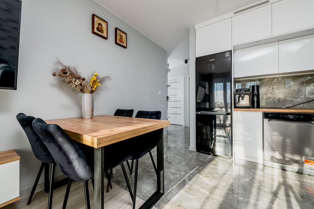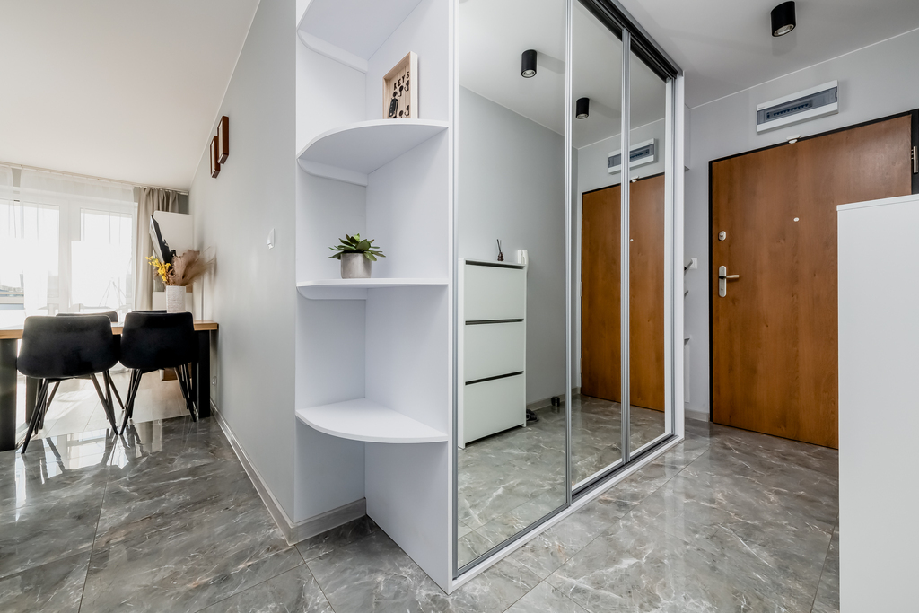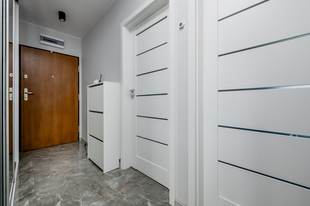 Oferowane mieszkanie to komfortowa, starannie zaprojektowana przestrzeń, która doskonale łączy nowoczesną estetykę z codzienną funkcjonalnością. Lokal składa się z dwóch niezależnych sypialni oraz przestronnego salonu z aneksem kuchennym, z którego prowadzi bezpośrednie wyjście na duży, wygodny balkon. Dużym atutem mieszkania jest praktyczny hol z pojemną, wykonaną na wymiar zabudową, zapewniającą komfort przechowywania i porządek już od wejścia. Mieszkanie zostało wykończone w podwyższonym standardzie, z dbałością o detale oraz w ponadczasowej, nowoczesnej stylistyce, która będzie dobrze prezentować się również w kolejnych latach. Lokal jest dwustronny, dzięki czemu wnętrza są bardzo dobrze doświetlone i przyjemne w codziennym użytkowaniu. Całość utrzymana jest w doskonałym stanie technicznym, mieszkanie nie wymaga żadnych dodatkowych nakładów finansowych i jest gotowe do zamieszkania. To propozycja dla osób, które szukają wygodnego, dopracowanego mieszkania, oferującego przestrzeń, światło i wyższy standard wykończenia.