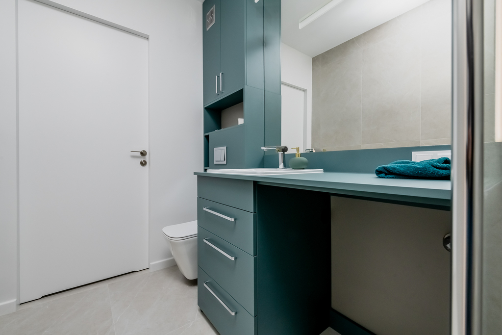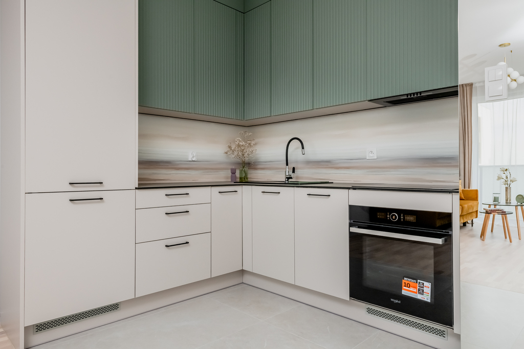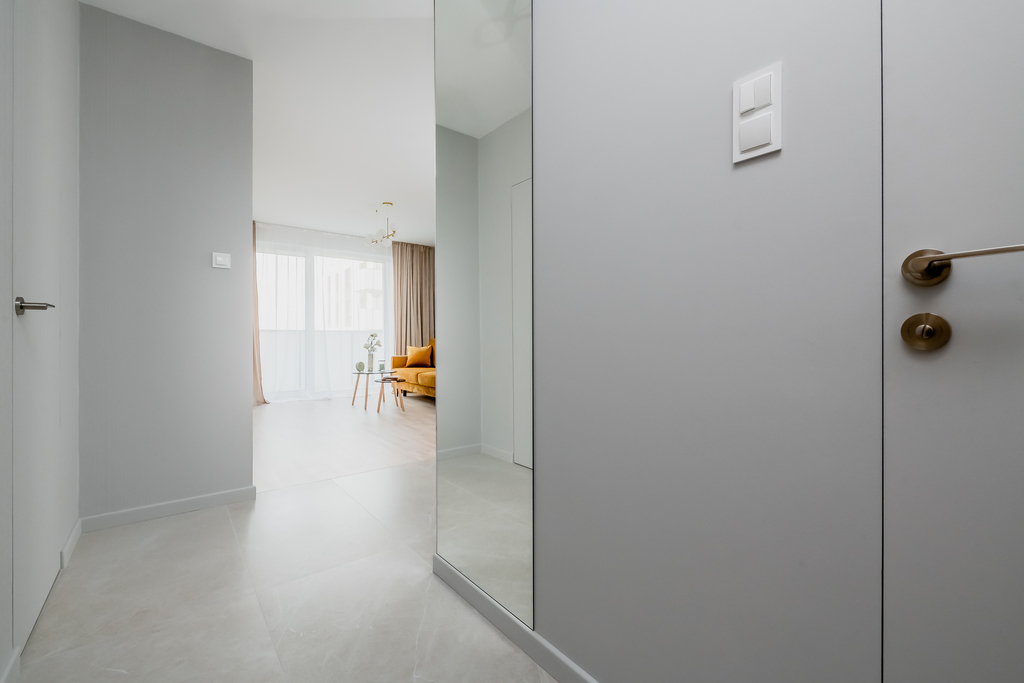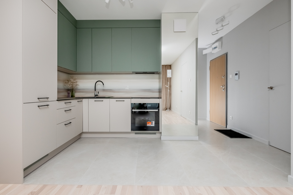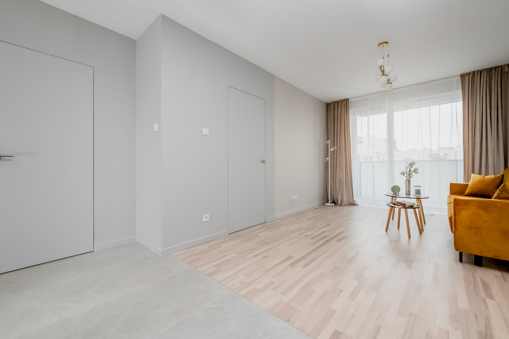 Mieszkanie składa się z przestronnego salonu z aneksem kuchennym, przytulnej sypialni, funkcjonalnej garderoby, eleganckiej łazienki oraz przedpokoju. Przemyślany układ pomieszczeń zapewnia komfort i wygodę codziennego życia. Salon z aneksem kuchennym stanowi centrum mieszkania – jasny, urządzony z dbałością o detale, z miejscem do wypoczynku. Aneks kuchenny wyposażony jest w pełną zabudowę oraz nowoczesny sprzęt AGD, co pozwala na wprowadzenie się bez dodatkowych nakładów, szlachetne materiały i stonowana kolorystyka tworzą harmonijną, przytulną przestrzeń. Subtelne detale, takie jak drzwi zlicowane ze ścianą, podkreślają nowoczesny charakter tego miejsca. Dodatkowo do dyspozycji mieszkańców jest funkcjonalna garderoba – idealne miejsce na przechowywanie i organizację codziennych rzeczy. Z salonu prowadzi wyjście na balkon – idealne miejsce do wypoczynku na świeżym powietrzu.
