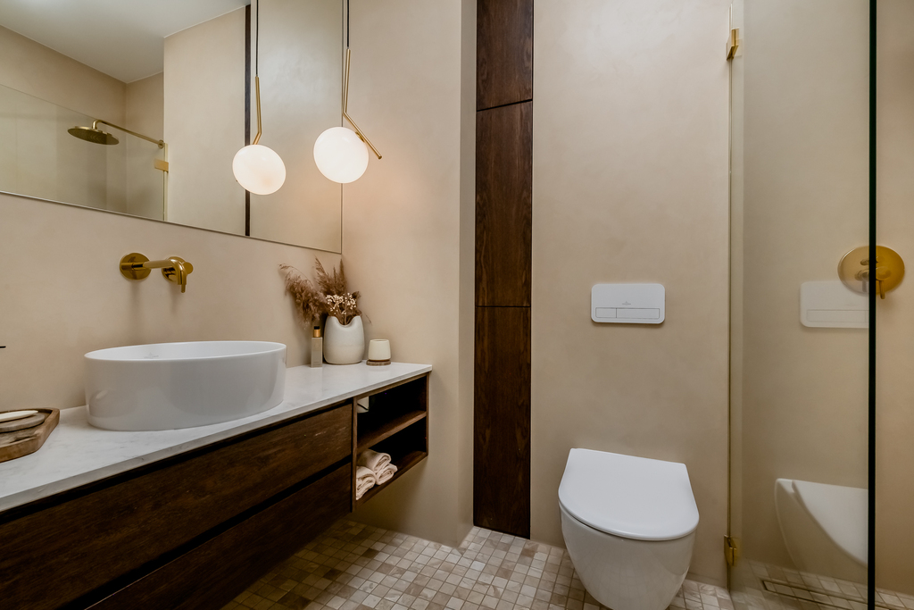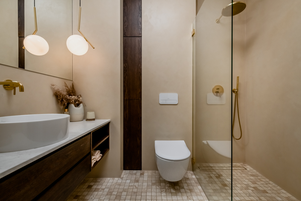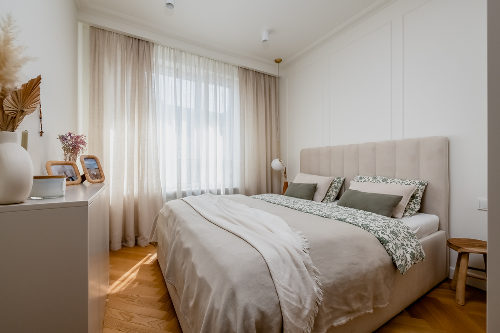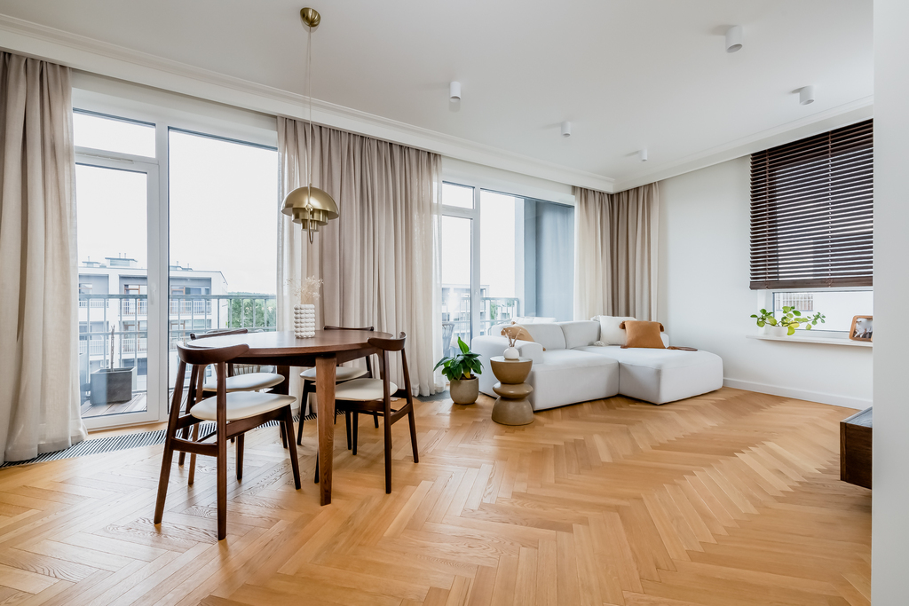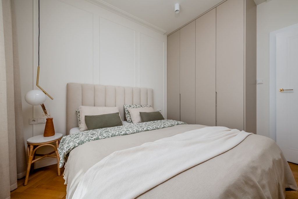 Wszystkie meble, zabudowy oraz szafy zostały wykonane na wymiar przez stolarza. Fronty to połączenie lakieru oraz naturalnego forniru drewnianego. W obu pokojach znajdują się pojemne, ergonomiczne szafy lakierowane. Kuchnia zaprojektowana z myślą o funkcjonalności, wyposażona w wysokiej klasy sprzęt AGD. Blat roboczy wykonany z konglomeratu Technistone. Łazienka w całości wykonana z mikrocementu, wyposażona w armaturę topowych marek. W salonie i pokojach położona została jodełka klasyczna – najwyższa klasa Elegance. Przestrzeń wejściowa, korytarz i łazienka wykończone zostały oryginalną mozaiką marmurową. Wszystkie drzwi wewnętrzne od renomowanej firmy Porta. Mieszkanie stanowi idealną propozycję dla osób ceniących estetykę, funkcjonalność i najwyższą jakość wykończenia. Zostało stworzone z myślą o komforcie, a każdy element jest przemyślany i dopracowany. Projekt architekta wnętrz oraz użycie ekskluzywnych materiałów czynią tę ofertę absolutnie unikatową na rynku.