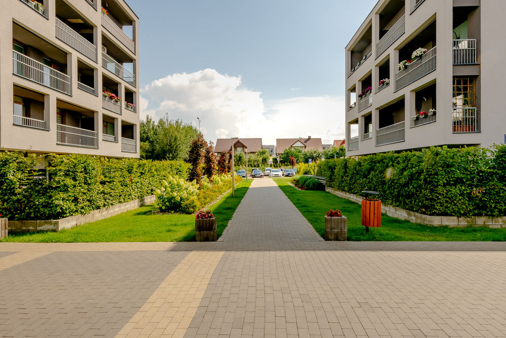 Osiedle położone jest w wyjątkowo cichej i spokojnej lokalizacji, otoczonej terenami zielonymi i lasem – idealne dla osób szukających wytchnienia od miejskiego zgiełku. Wokół dominuje niska, nowoczesna zabudowa, co zapewnia poczucie przestrzeni i prywatności. Teren osiedla jest starannie zagospodarowany – znajdziesz tu szerokie, zielone aleje spacerowe. Przestrzeń wspólna jest zadbana, cicha i monitorowana, co dodatkowo podnosi standard życia w tym miejscu.
