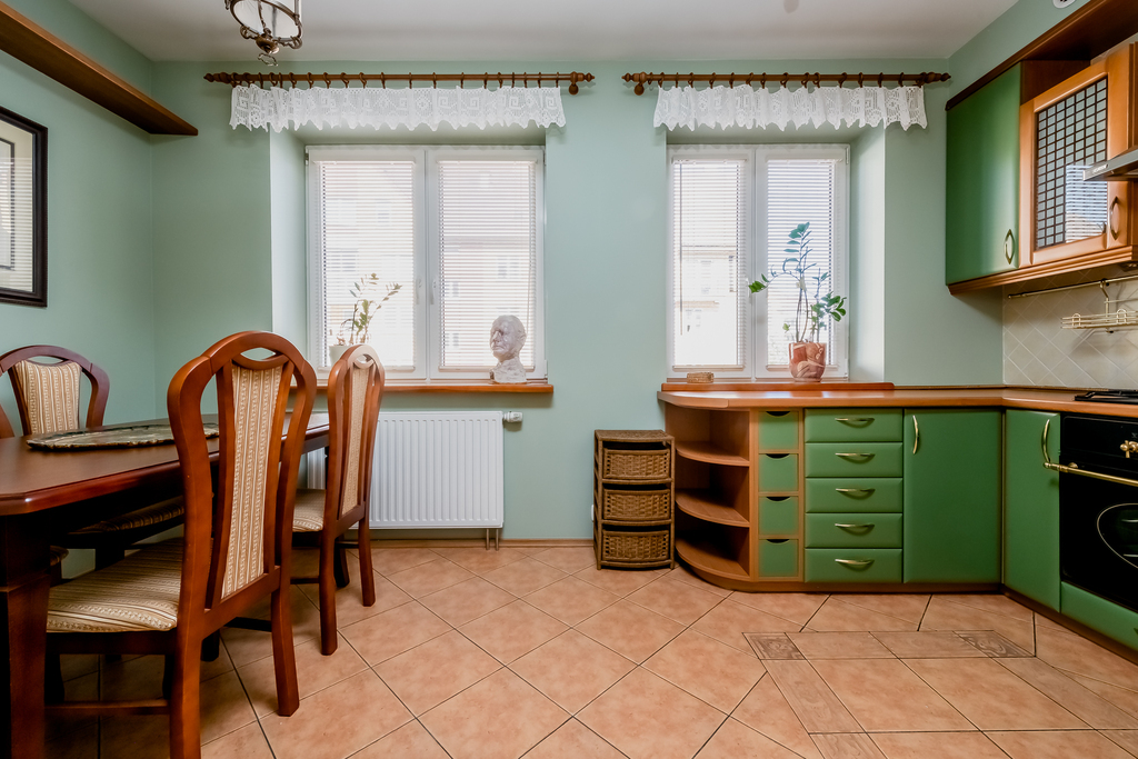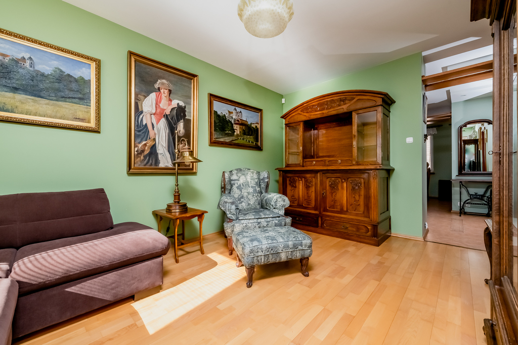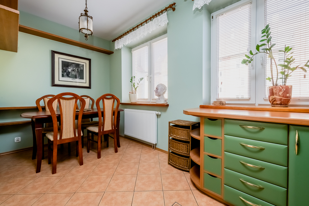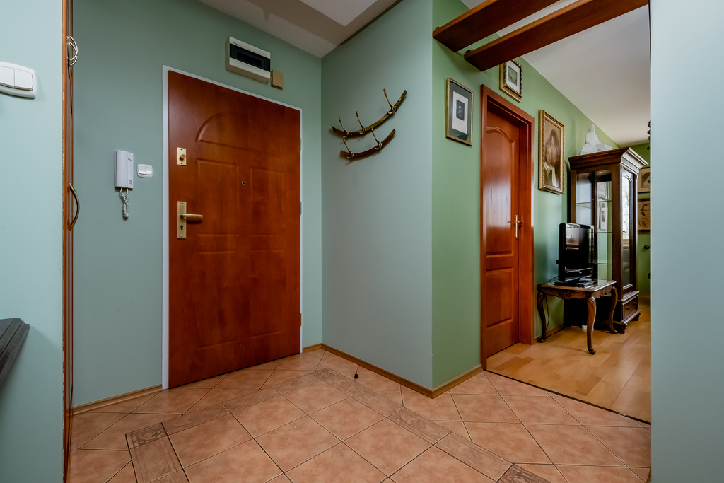 Mieszkanie zostało wykończone w pięknym, klasycznym stylu. W ubiegłym roku zostało odświeżone i jest gotowe do wprowadzenia bez dodatkowych nakładów. Rozkład pomieszczeń jest przemyślany i funkcjonalny. Dwustronna ekspozycja zapewnia doskonałe doświetlenie przez cały dzień, a widok na zieleń z salonu i sypialni to rzadkość, którą docenią osoby ceniące spokój i ciszę. Duża, oddzielna kuchnia z jadalnią to rozwiązanie coraz rzadziej spotykane, idealne zarówno dla osób lubiących gotować, jak i dla tych, którym zależy na wyraźnym podziale stref w mieszkaniu. Mieszkanie posiada oddzielną garderobę, a oprócz niej szafy w zabudowie rozmieszczone w przedpokoju i sypialni. Do mieszkania przynależy balkon typu loggia z widokiem na zieleń oraz duża piwnica.